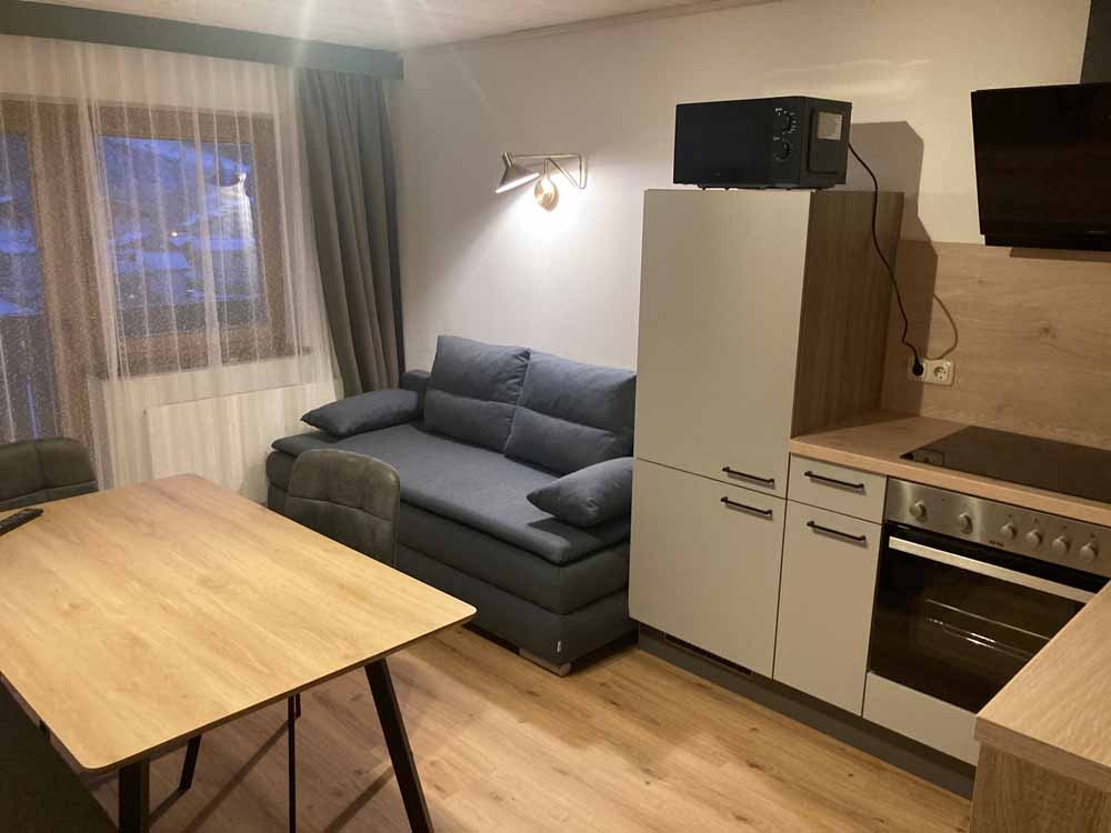 Die Ferienwohnung bietet Platz für zwei bis drei Personen und ist mit Kabel-TV, einer Wohnküche und 2 getrennten Schlafzimmer und einem Bad mit Dusche und WC ausgestattet. Vom Balkon aus haben Sie einen traumhaften Ausblick auf die Bergwelt des Steinernen Meers. Als Gast können Sie zudem in allen Räumen unser Gratis-WLAN nutzen. Die Preise gelten für die Ferienwohnung zzgl. Ortstaxe € 2,50 pro Erw./Tag und einmalig Endreinigung € 40,-.